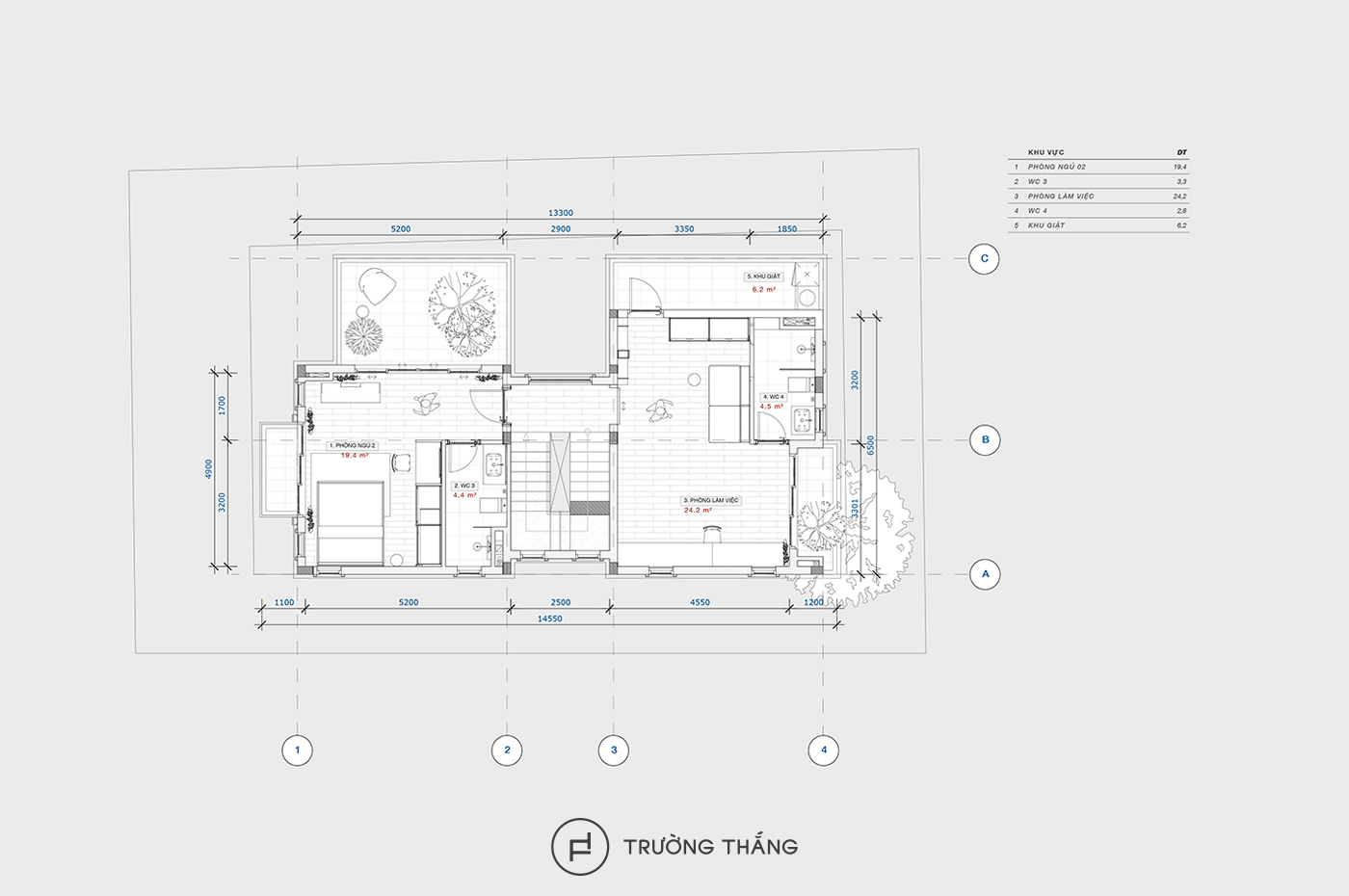 Mặt bằng nội thất tầng 2 biệt thự Zeitgeist Nhà Bè được Trường Thắng bố trí.