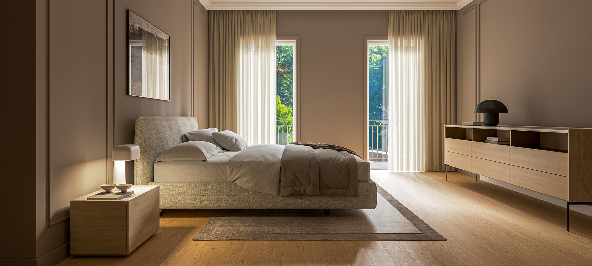 All products in the complete bedroom solution are designed in harmony — using consistent materials, colors, and a minimalist style.