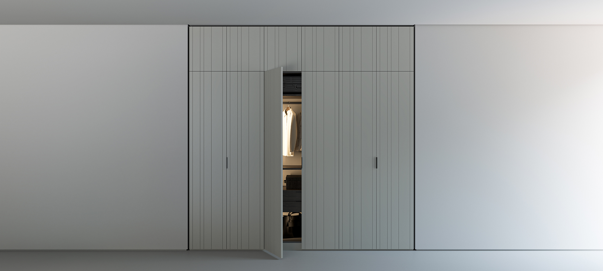 • A slim aluminum handle fits neatly into the grooves, making daily use smooth while adding a refined accent. Together, these elements create a wardrobe that combines modern style, practicality, and timeless elegance.