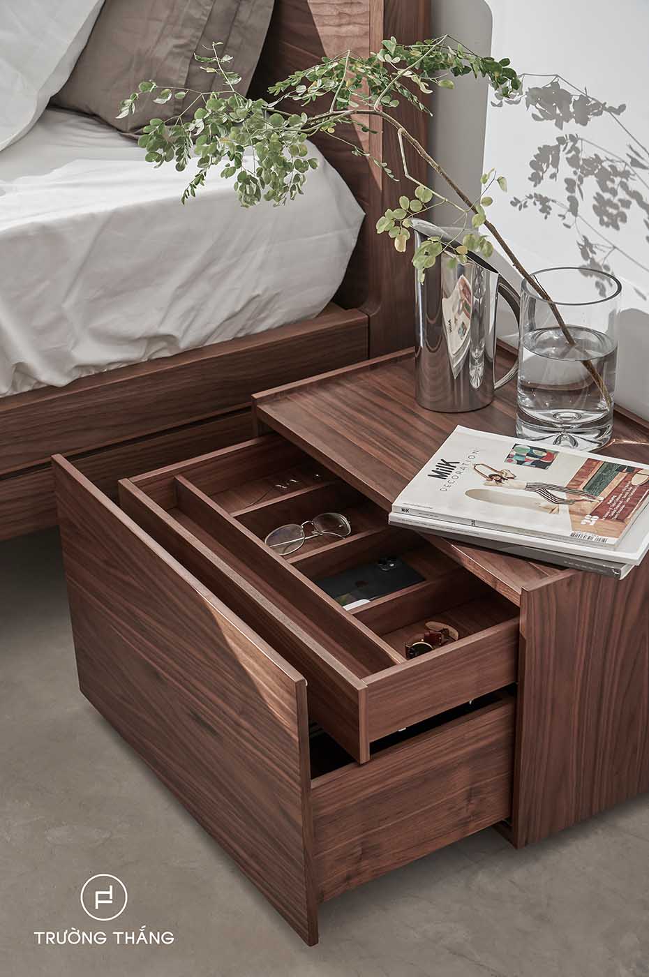 Bên cạnh những nội thất chính như chiếc giường, bàn trang điểm, tủ quần áo, thì tủ đầu giường không còn là vật dụng xa lạ đối với những gia đình hiện đại. Nó góp phần giúp không gian phòng ngủ trở nên hiện đại và có tính thẩm mỹ cao hơn. Ngày nay tủ đầu đường có rất nhiều mẫu mã, chất liệu và công năng khác nhau. Khiến bạn phân vân không biết nên chọn tủ để đầu giường bằng gỗ nào đẹp, thích hợp với phong cách thiết kế phòng ngủ của mình. Vậy thì còn chần chừ gì nữa mà không cùng Trường Thắng tham khảo ngay 5 kinh nghiệm được tổng hợp trong bài viết dưới đây!