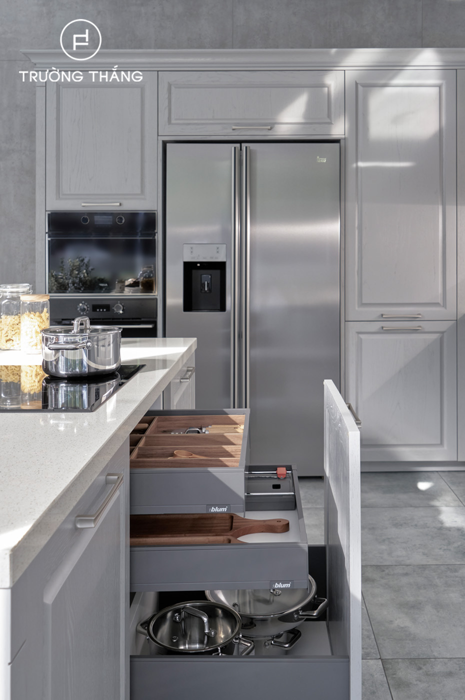 Trường Thắng luôn chọn dòng Blum premier cao cấp để duy trì tuổi thọ bếp và mượt mà khi sử dụng.
