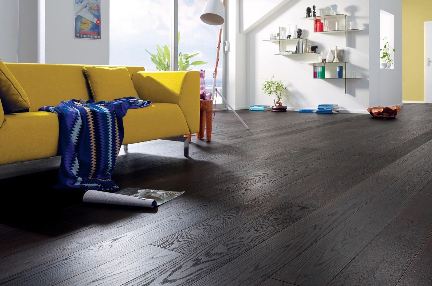 Sàn gỗ kỹ thuật màu Black Oak kết hợp đồ nội thất màu tương phản