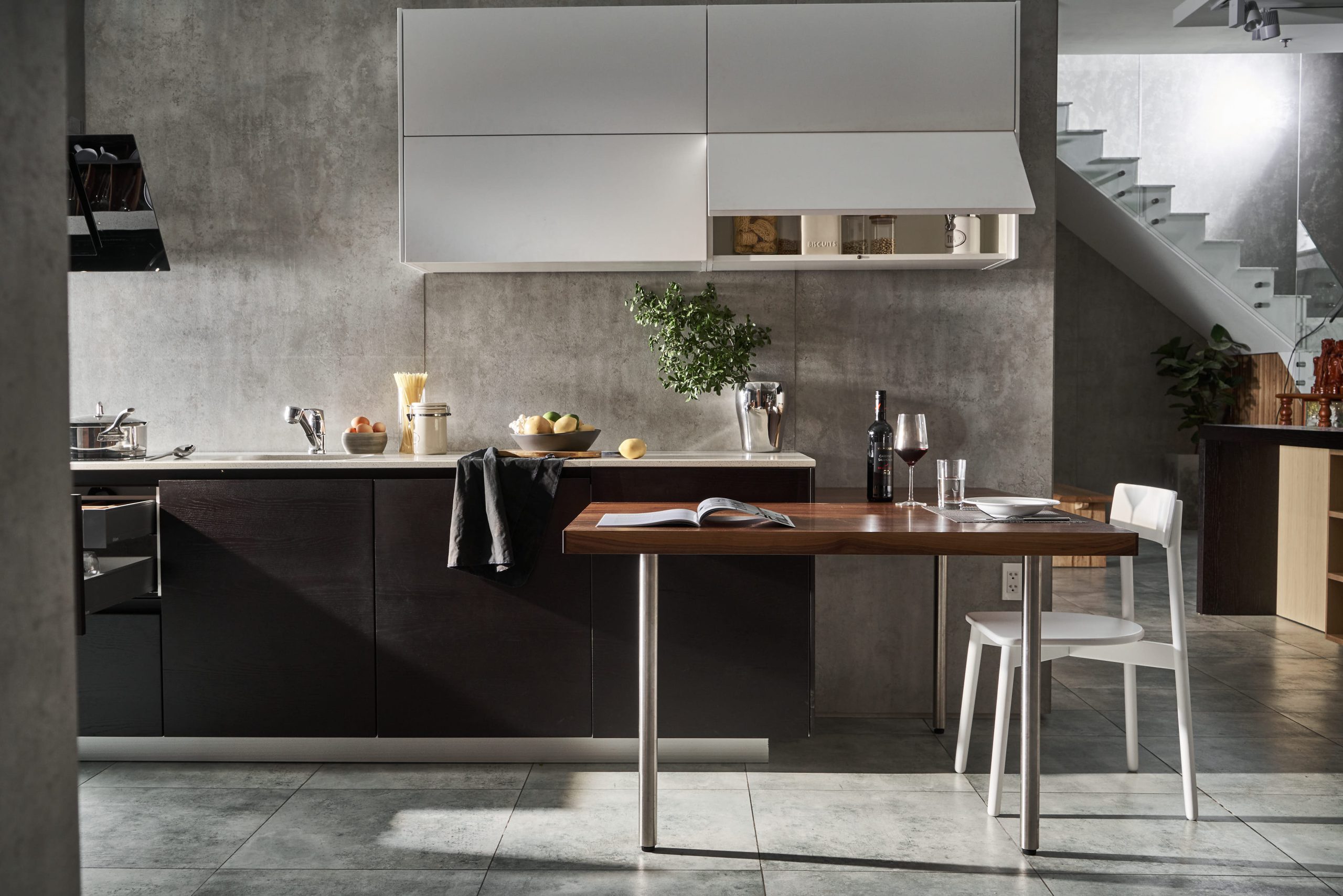Vật liệu khác nhau giúp phân chia khu vực làm việc một cách trực quan hơn. Đảo bếp hoặc tủ lưu trữ với màu sắc khác nhau tạo sự nổi bật và làm mới thêm không gian. Thông thường tủ treo và tủ sàn sẽ có hai màu khác nhau. Một tuỳ chọn khác cũng phổ biến không kém là đảo bếp và hệ tủ còn lại. Các phương án kết hợp này cũng tạo nên sắc thái hiện đại không chỉ cho nhà bếp mà còn là toàn bộ ngôi nhà.