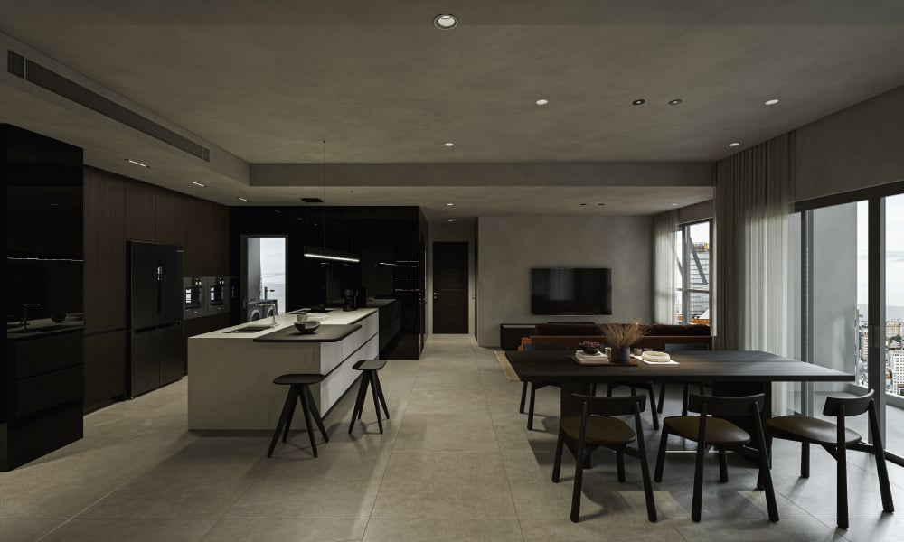“Nơi diễn ra hoạt động của nhân vật không phải ở trong một phòng kín mà nằm ở một góc của phòng tiếp khách. Các chi tiết về kiến trúc và nội thất tạo nên hiệu ứng phòng trong phòng. Bố cục này khá phù hợp với loại hình không gian làm việc mà chúng tôi muốn hướng đến.”